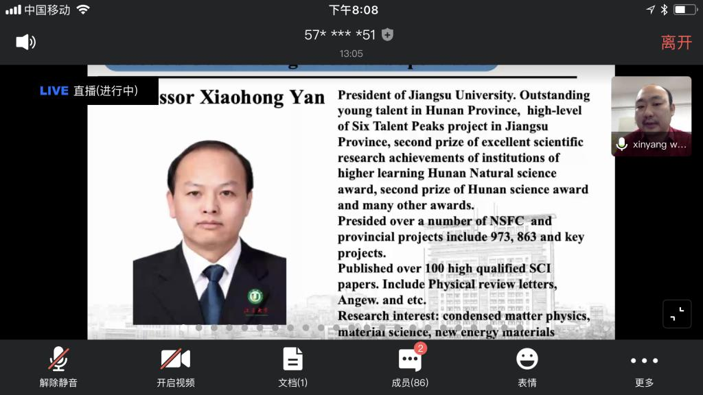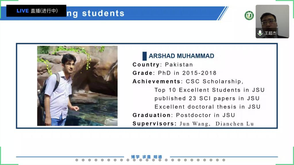 To help prospective students get more information about Jiangsu University, Overseas Education College is conducting a series of webinars. They gave a general introduction to our university, admission procedure and scholarships, etc. in the first webinar and representatives from schools that provide engineering programs attended the second webinar. The third webinar was successfully held on May 7, where representatives from Faculty of Science gave presentations about our school. They introduced the projects we are currently conducting, our labs, prestigious professors, outstanding students, so on and so forth. Those who are interested in the projects we provide interacted online with the representatives.
