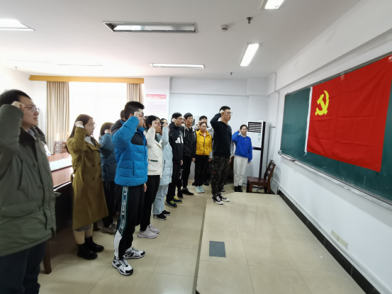 12月4日上午,酷爱成人网 学生党支部在实践楼301举行入党宣誓仪式。院团委副书记蒋春翔、学生党支部书记朱建飞、学生支部全体党员和部分入党积极分子参加仪式。
