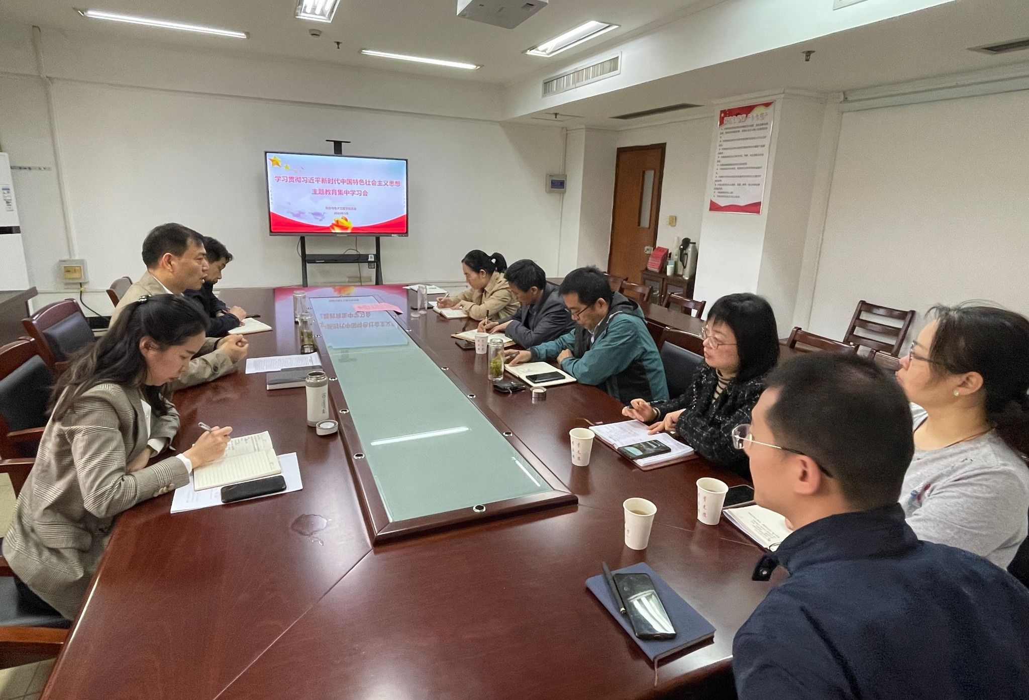 5月10日上午,酷爱成人网 在物理楼301举办学习贯彻习近平新时代中国特色社会主义思想主题教育集中学习会。学院党委委员、各党支部书记参加了会议。会议由院党委书记潘金彪主持。