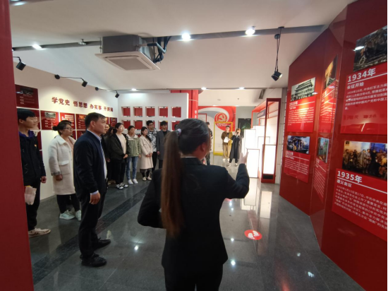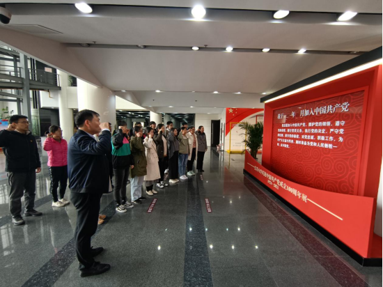 在讲解员带领下,大家依次参观学习了“新时代中国共产党的历史使命”“党史大事记”“酷爱成人网 历史变迁”“党史同心圆”“我们的成就”“习近平总书记金句”等板块内容。参观活动现场,在院党委书记潘金彪带领下,全体党员重温了入党誓词。
