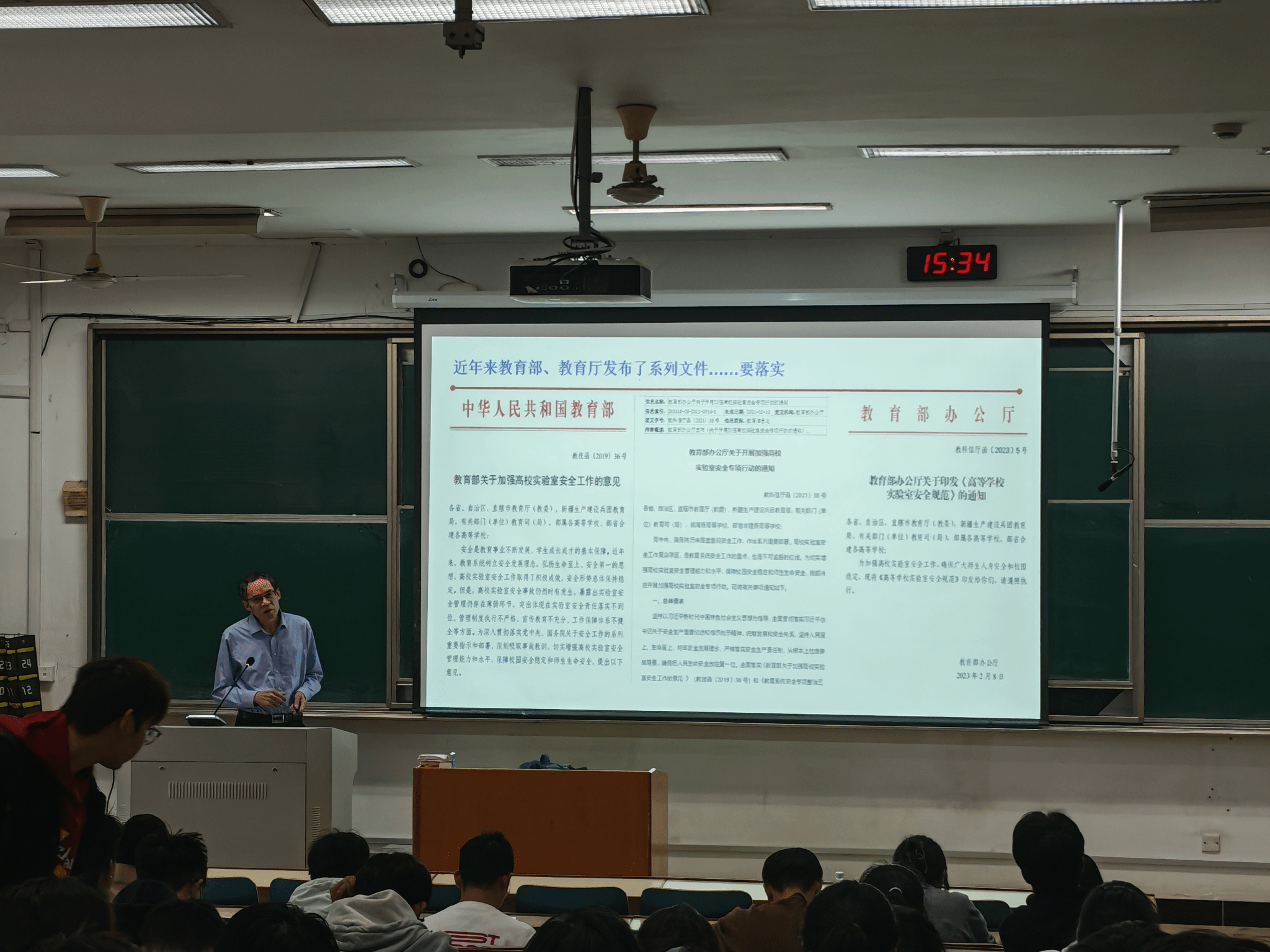 本次讲座涵盖学校和学院实验室安全管理规章制度、危险源识别与风险评估、安全隐患排查、应急处理流程以及高校实验室安全事故案例分析等多个方面。讲座中,王国余结合学校实验室安全督查中发现的实际情况,重点围绕危险化学品管理、气体使用安全、高温高压设备操作、个人安全防护等关键环节,对当前实验室安全管理和使用中存在的薄弱点进行了深入剖析。通过真实案例警示,引导学生牢固树立“生命至上、安全第一”的理念,共同营造安全、规范、有序的实验环境。