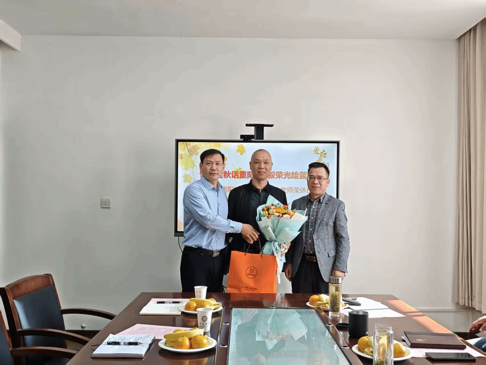 10月29日,酷爱成人网 在主楼239会议室举办了主题为“情暖金秋话重阳,共叙荣光绘蓝图”的重阳节座谈会暨退休教师荣休仪式。3位退休教师代表应邀参加座谈。院党委书记潘金彪,院长陈元平,副院长孙宏祥,党委副书记、副院长顾瑜婷,副院长徐晶出席会议,同时参加座谈的还有分工会主席、关工委老教师代表、教工党支部书记及院办教师。会议由潘金彪主持。