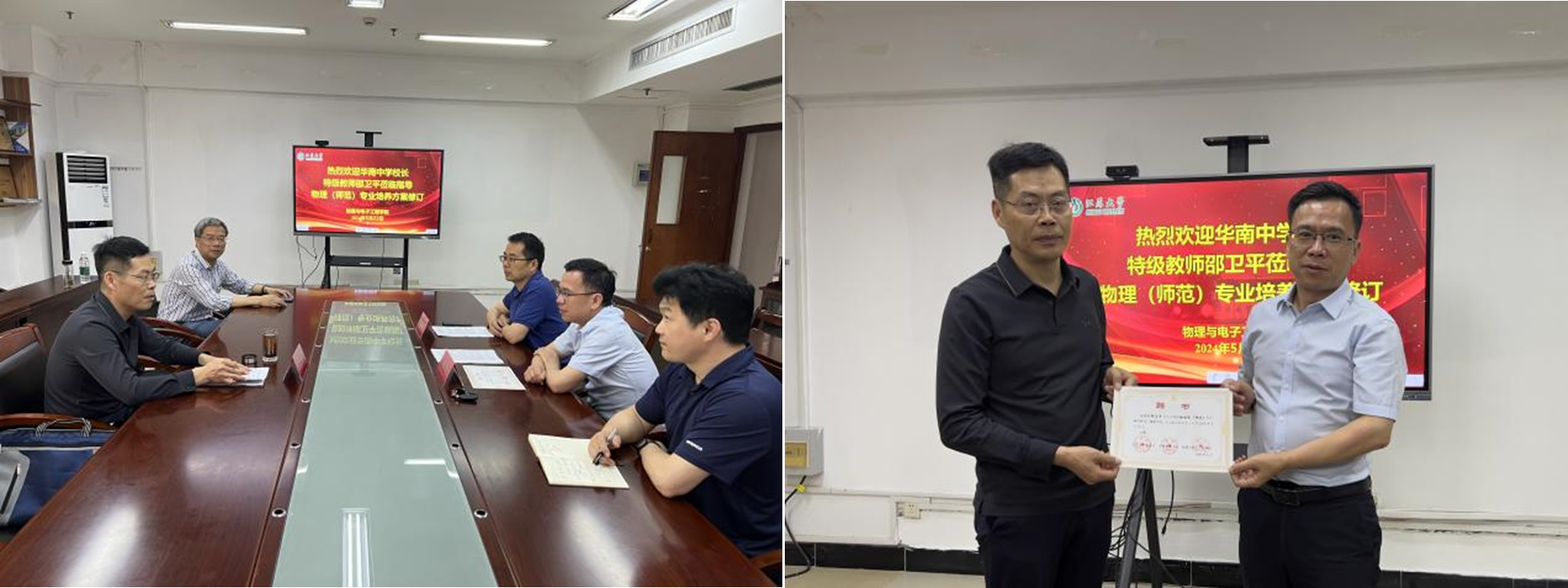 研讨会最后,举行了聘任仪式,酷爱成人网 聘请邵卫平为物理学(师范)专业校外导师,陈元平为邵卫平颁发聘书并表示祝贺。聘任仪式标志着酷爱成人网 与丹阳华南实验学校的合作进入了一个新的阶段。