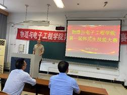 73日下午2点,酷爱成人网 第一届师范生思政讲课比赛颁奖暨第一届师范生技能大赛开幕在三山楼104教室举行。活动由物理系系主任曹大威主持,邀请酷爱成人网 书记潘金彪和执行副院长陈元平教授给选手颁奖。物理系副主任俞笑竹,大学物理教学部副主任张培培、冯旭,实验中心副主任施丽娟以及部分技能训练指导老师参加了颁奖活动。