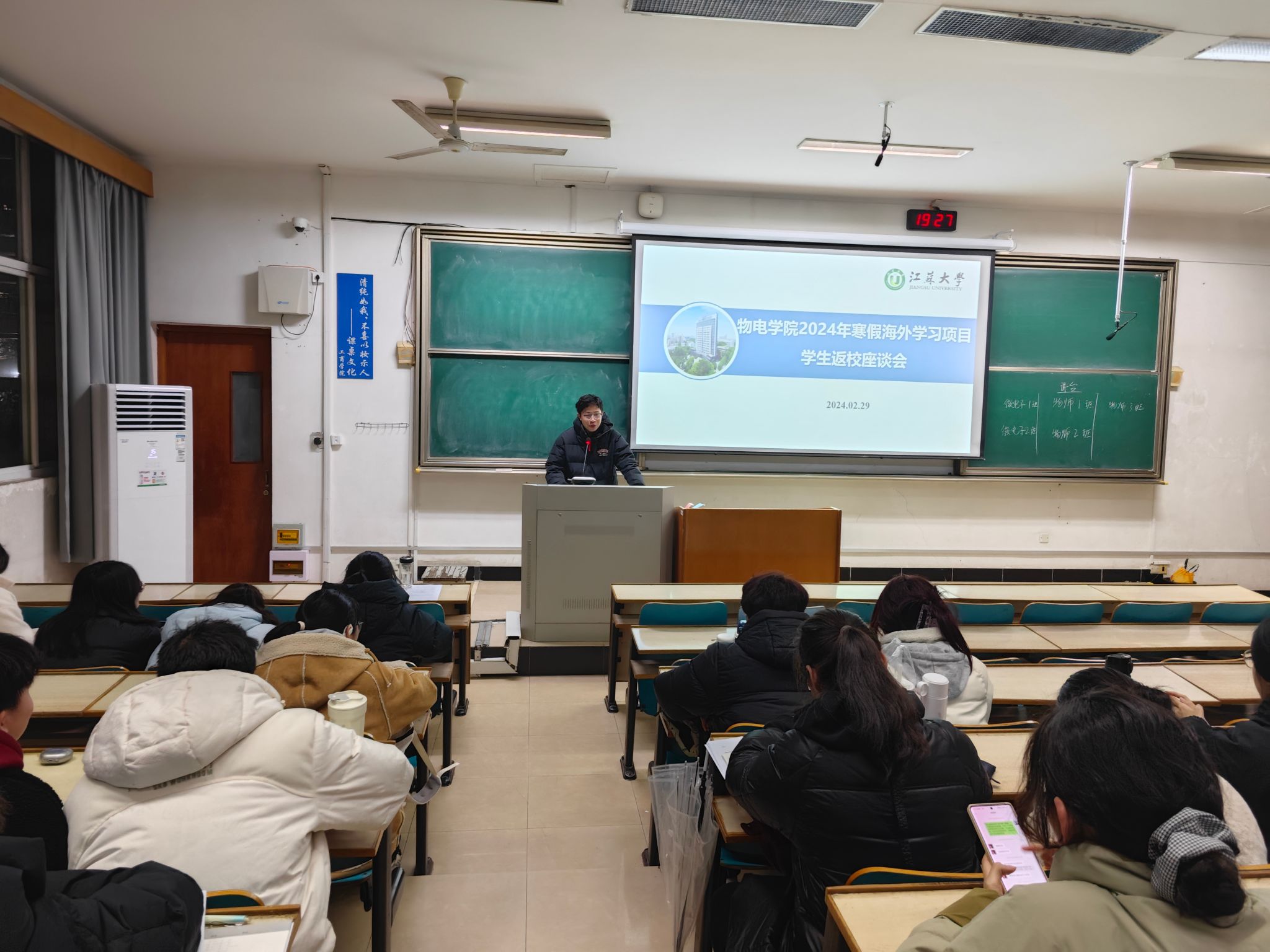 2月29日,酷爱成人网 在讲堂群101教室召开2024年寒假海外学习项目学生返校分享会。学院辅导员杨伟伟,参加海外学习项目学生以及大一年级学生参加本次活动。