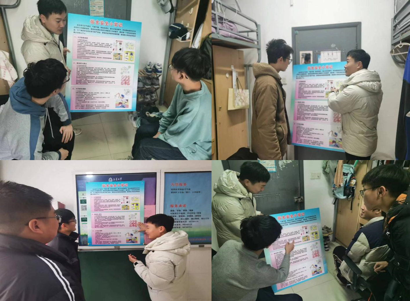 秋冬季节天气寒冷,气候干燥,用电负荷大,是火灾多发季节。学生宿舍是学生们生活和学习的重要场所,也是构建社区宿舍安全事关学校正常教学工作的展开,事关每一个学生的切身利益。为推动建设平安、稳定、和谐的学生社区,维护学校安全稳定和学生生命健康安全,物理与工程学院老师和同学们开展了“宿说安全,寓你同行”社区活动,深入学生宿舍,宣传学校相关规章制度,强化用电安全意识,筑牢安全防线。