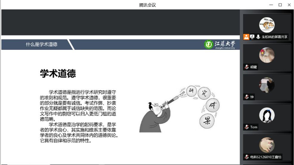 在主题班会中,辅导员蒋春翔强调了科学道德严肃性和重要性,引导研究生遵守学术规范、坚守学术诚信、完善学术人格、维护学术尊严,摒弃学术不端行为。