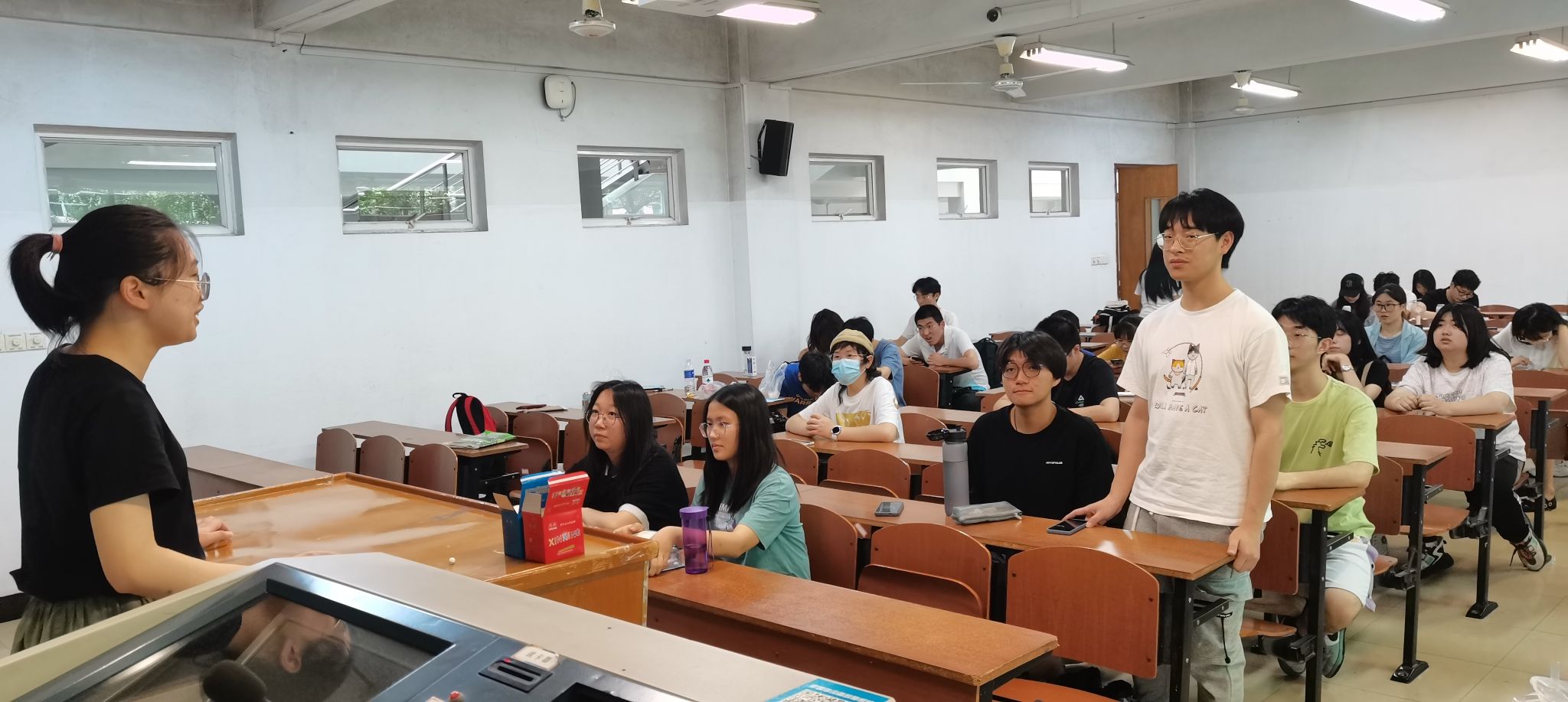 首先,王佳艺对本次班级心理活动的内容进行介绍,并请同学分享自己在日常学习生活中遇到的压力以及自己的减压方法;接着,全体同学一起参与了三个减压小游戏;活动最后,王佳艺进行活动总结,活动圆满结束。