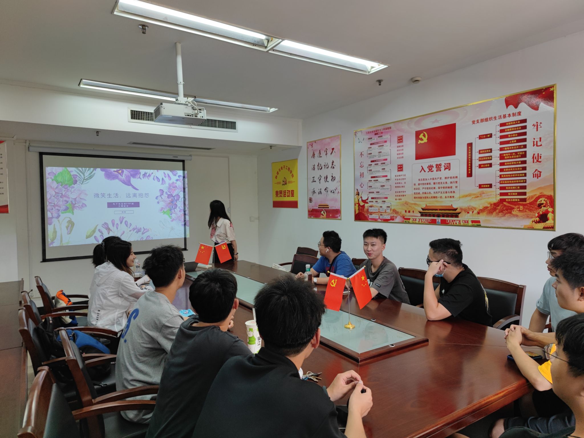 526日,电信硕2101班开展了以“微笑生活,远离抱怨”为主题的班会活动,班级全体成员参与活动,班级心理委员杨铮和孙宁康主持此次心理班会。