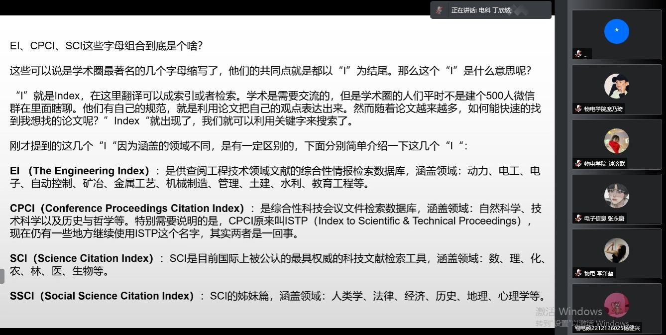 4月27日,酷爱成人网 研究生会于腾讯会议线上举办了论文检索交流会,旨在提升研究生的科研信息搜索和科研研究能力。本次交流会邀请了2020级硕士周鑫佳和丁欣然进行研究生生涯规划分享。
