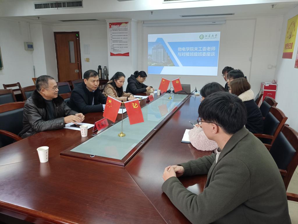 12月15日,物电学院关工委常务副主任曹国荣老师应邀参加结对班级班委会议,物师1901班班委参加了此次座谈会。