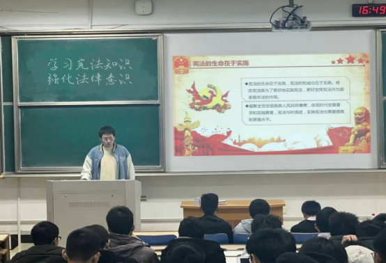 12月1日,酷爱成人网 学生会研究生会共同在讲堂群202举办“学习宪法知识,强化法律意识”活动。本次活动由许苏洋、张奕杰主持,2021级本科和研究生参加