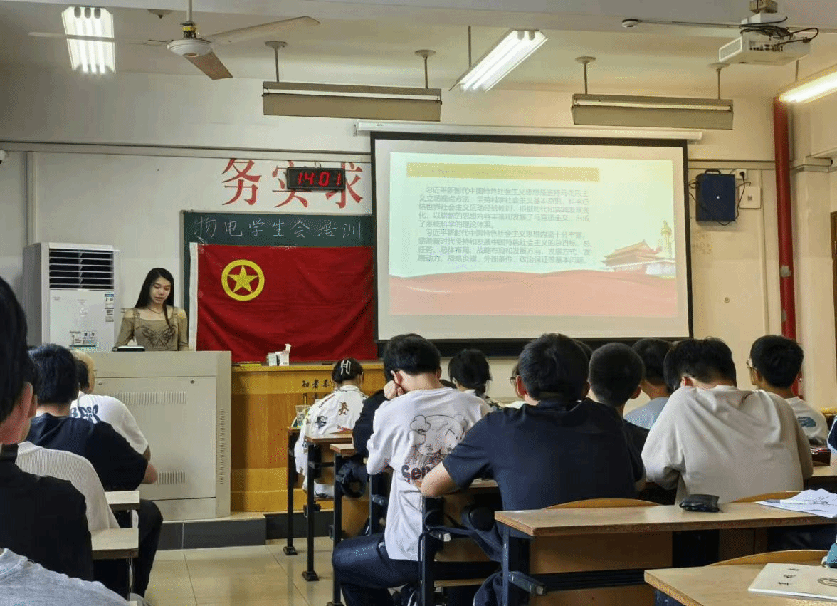 培训活动伊始,办公室部长谢玉洁为大家详细介绍学生会的作用及其重大意义,深刻阐明身为学生会成员身上的责任与担当,她强调物电学生会在学生自我发展中的重要性,鼓励同学努力提升自己的综合素质,为学校的发展和同学们的成长贡献更多的力量。同学们认真听讲,积极参与,课堂气氛十分活跃,最后倍受鼓舞,也更加明确了自己肩负的责任。