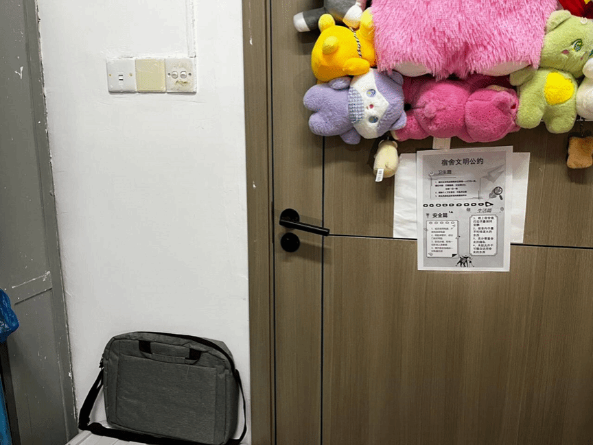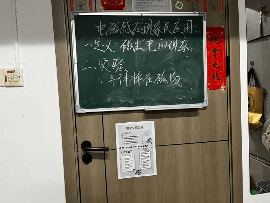 随后,同学们纷纷将宿舍文明公约海报张贴在宿舍门上,用以警醒自身。