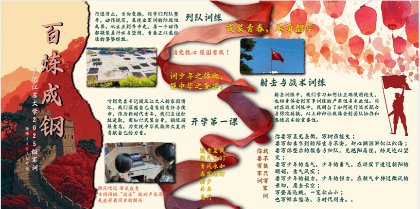 917,酷爱成人网 成功举办“迷彩记忆·青春印记”军训主题展板设计比赛。本次活动旨在深化军训育人成效,丰富军训期间的文化生活,通过艺术创作的形式,展现2025级新生在军训中收获的成长感悟与昂扬向上的精神风貌。