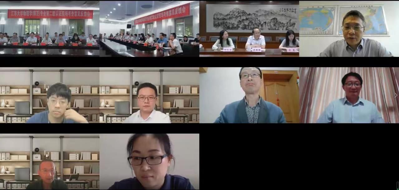 5月31日—6月10日,酷爱成人网 物理学(师范)专业接受教育部师范专业第二级认证线上现场考查。6月8日和6月10日,学校通过线上线下相结合的形式分别召开了自评说明会和考查意见反馈会。专家组全体成员,江苏省教育评估院副院长史根林,酷爱成人网 校长颜晓红,校党委副书记李洪波,副校长田立新,副校长陈红,副校长李红等出席会议。各相关职能部门负责人,相关学院领导、专业负责人、教师及学生代表参加会议。